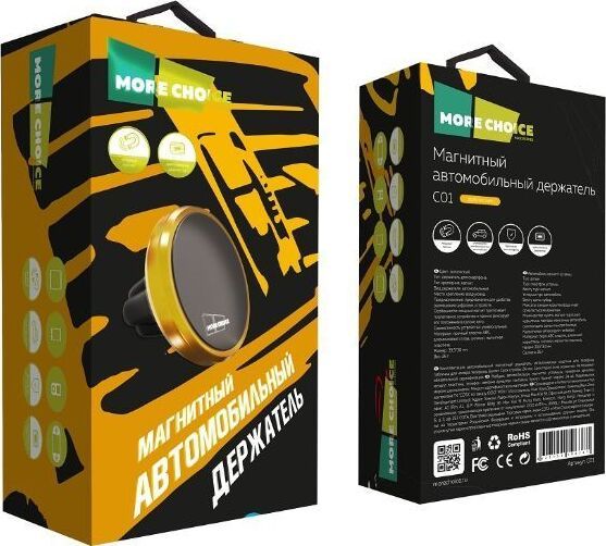 More choice C01 Держатель автомобильный магнитный Тип: держатель для смартфона Тип крепления: магнит Вид держателя: автомобильный Место крепления: воздуховод Предназначение: предназначен для удобства размещения цифровых устройств Особенности: мощный магнит притягивает портативное устройство и прочно фиксирует его положение в салоне авто Совместимость устройства: универсальный Материал: прочный пластик ABC, алюминиевый сплав, силикон, магнитная пластина Комплектация: автомобильный магнитный держатель, металлическая пластина для телефона, табличка для номера телефона, буклет Размер упаковки: 125*70*50 мм Вес: 26 г. Цвета: black, silver, red, gold