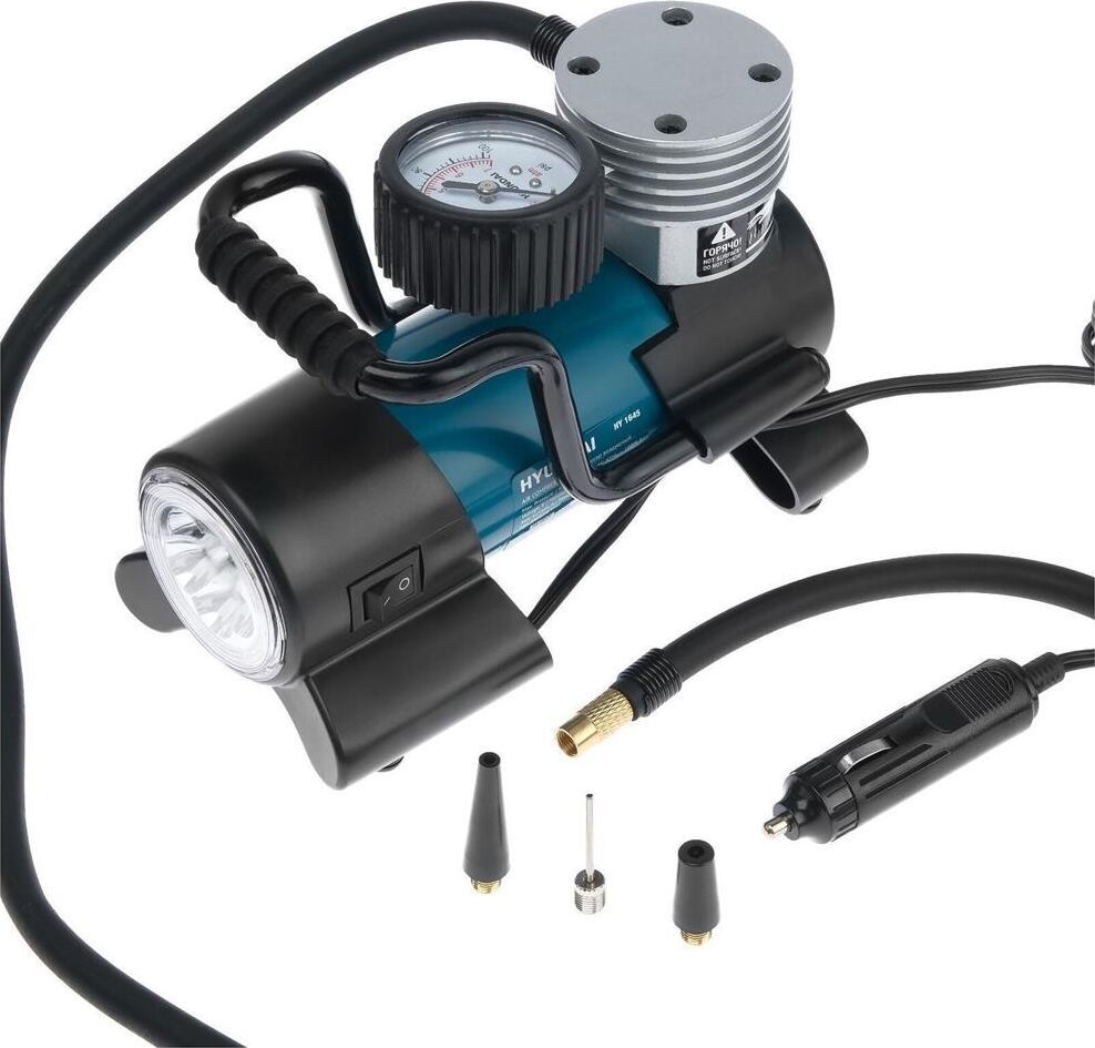 Автомобильный компрессор HYUNDAI HY 1645 - устройство, которое необходимо каждому автолюбителю.Компрессор предназначен для подкачки автомобильных, велосипедных и мотоциклетных шин. Манометр аналоговый. Набор дополнительных штуцеров да. Поршневое кольцо износостойкое из фторопласта. Пыленепроницаемое исполнение да. Рабочий цилиндр, мм 30. Электродвигатель с постоянными магнитами. Максимальное давление, PSI / ATM 100 / 6.8. Максимальная производительность, л/мин 45. Рабочее напряжение, В 12. Максимальный рабочий ток, A 12. Время непрерывной работы, мин 30 Длина провода, см 300. Длина шланга, см 100. Диапазон рабочих температур, t C -30 – +80. Уровень шума (расстояние не менее 1 метра), дБ 85. Тип компрессора поршневой, не требующий смазки. Радиатор из алюминиевого сплава. Фонарь есть. Вес, кг 1.8.