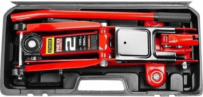 Домкрат гидравлический подкатной, 2т, RED FORCE. Ручка для переноса. Плавный спуск. Маневренный. Поворотная чашка. Грузоподъемность, 2т. Вес домкрата, 9,8кг. Мин. высота подхвата, 130мм. Макс. высота подхвата, 350мм.