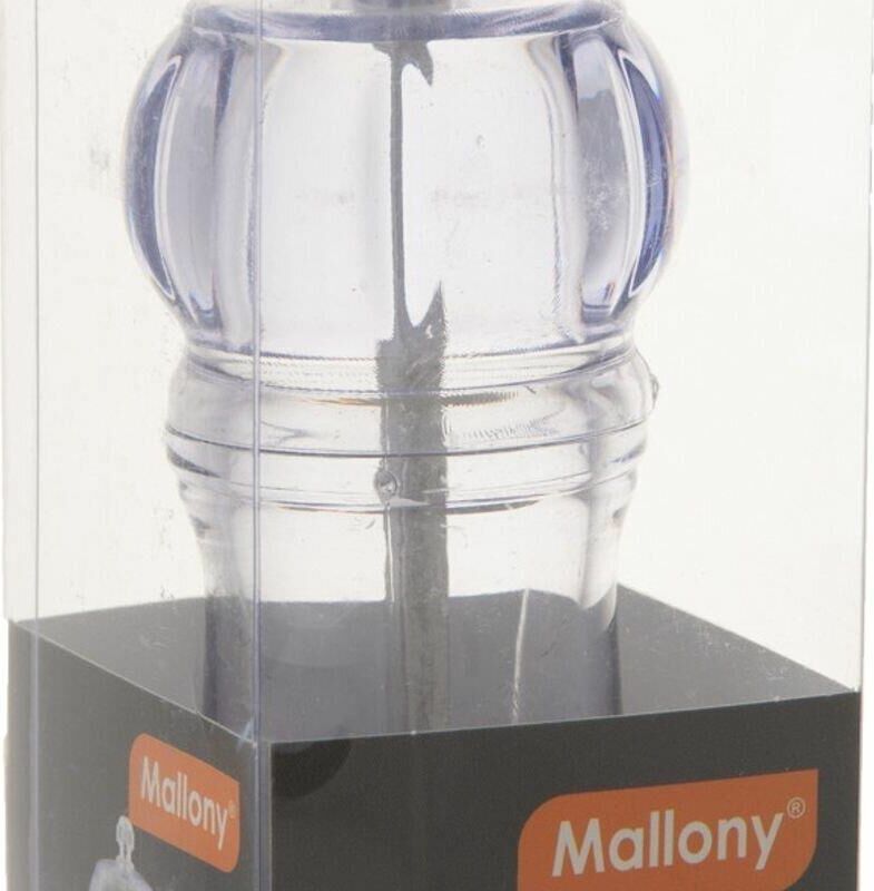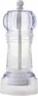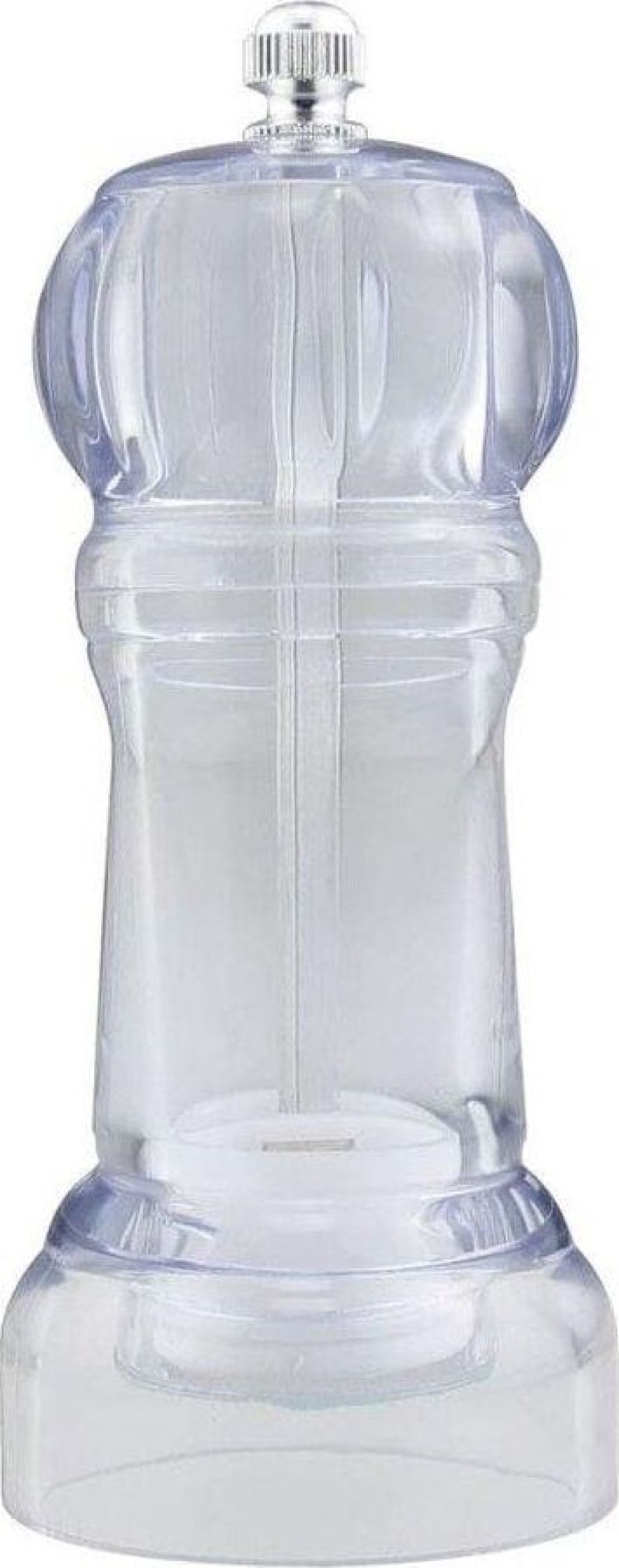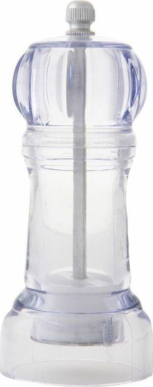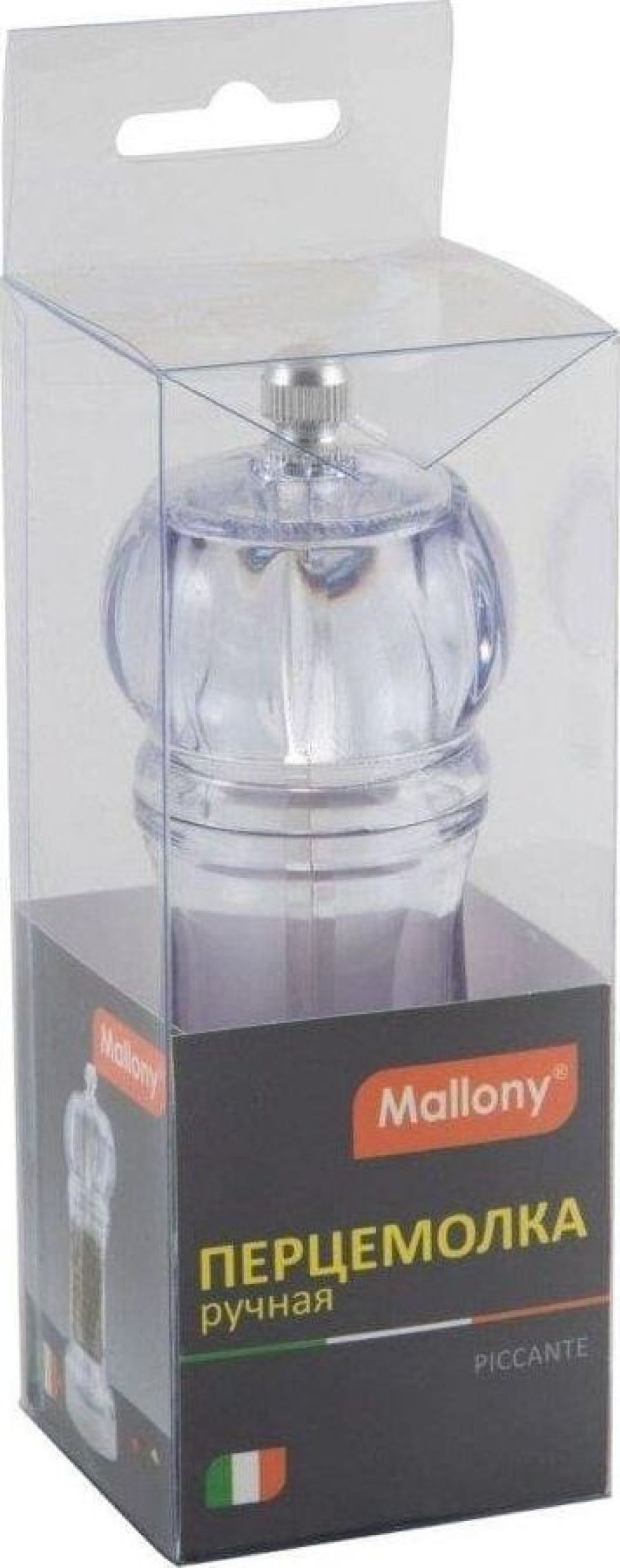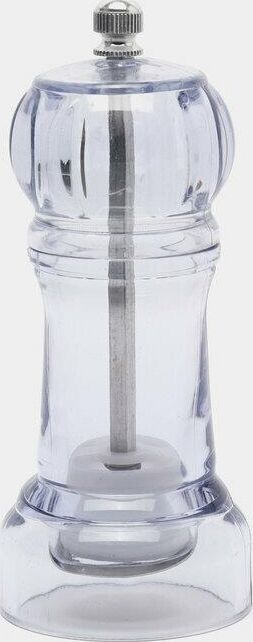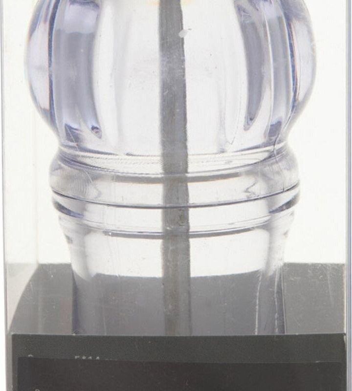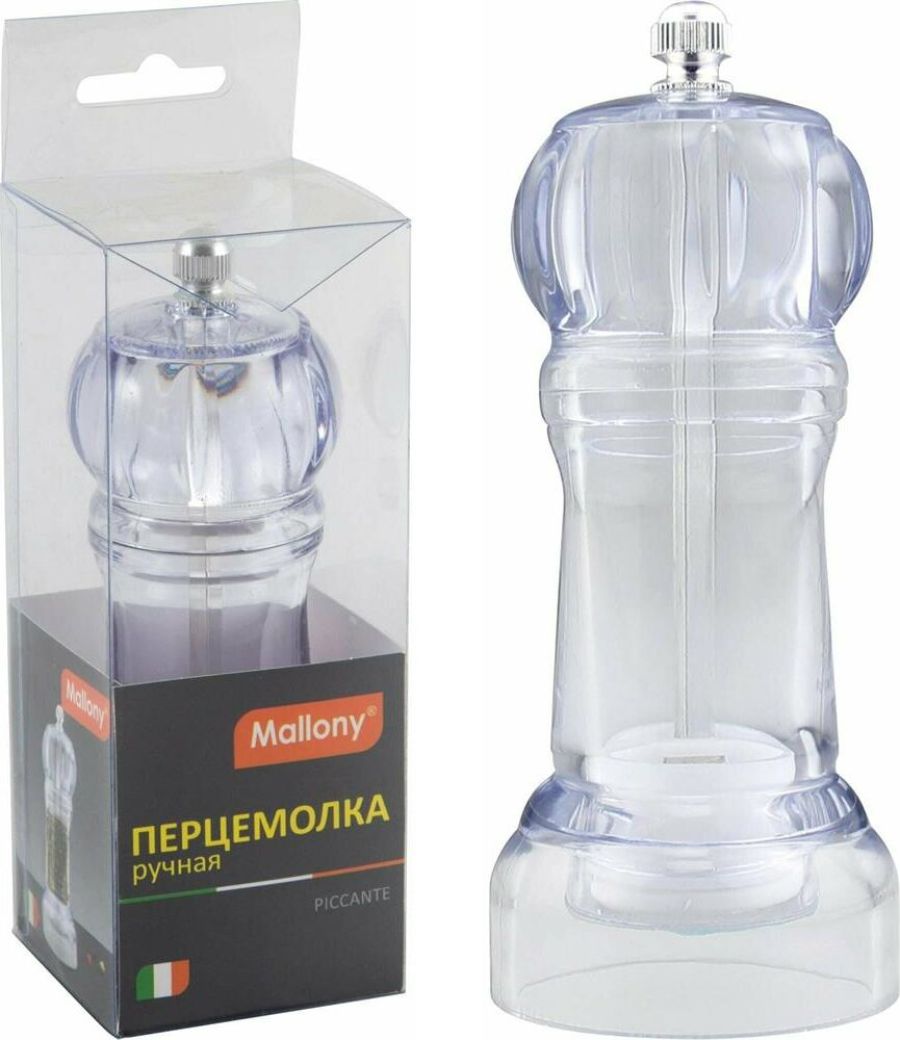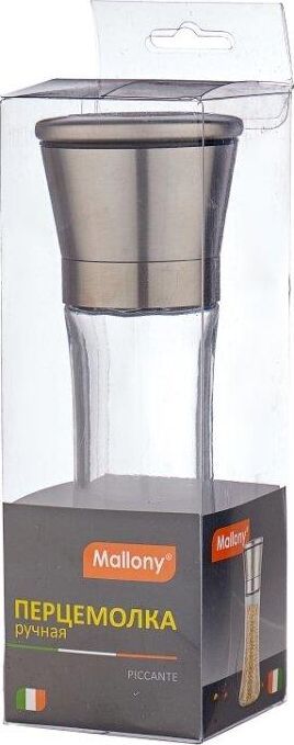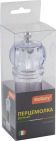 Перцемолка ручная Предназначена для ручного помола крупной соли и всех видов перца горошком. Размеры: 6.5*19 см, 285 гр, объем 185 мл Материалы: стекло, нерж сталь 201 жернова — грубая керамика Упаковка: ПВХ коробка, цветной вкладыш Регулировка степени помола не рекомендуется мыть в посудомоечной машине, чистить щеточкой.