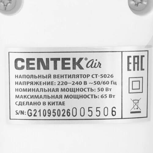 CENTEK CT-5026 WHITE (белый) 65Вт, SILENT PRO Напряжение питания 220-240 В~50/60 Гц Мощность 65 Вт Кол-во скоростей 4 Кол-во лопастей 5 Таймер до 9 часов Пульт дистанционного управления Ночной режим Низкий уровень шума Диаметр решетки 44,5 см