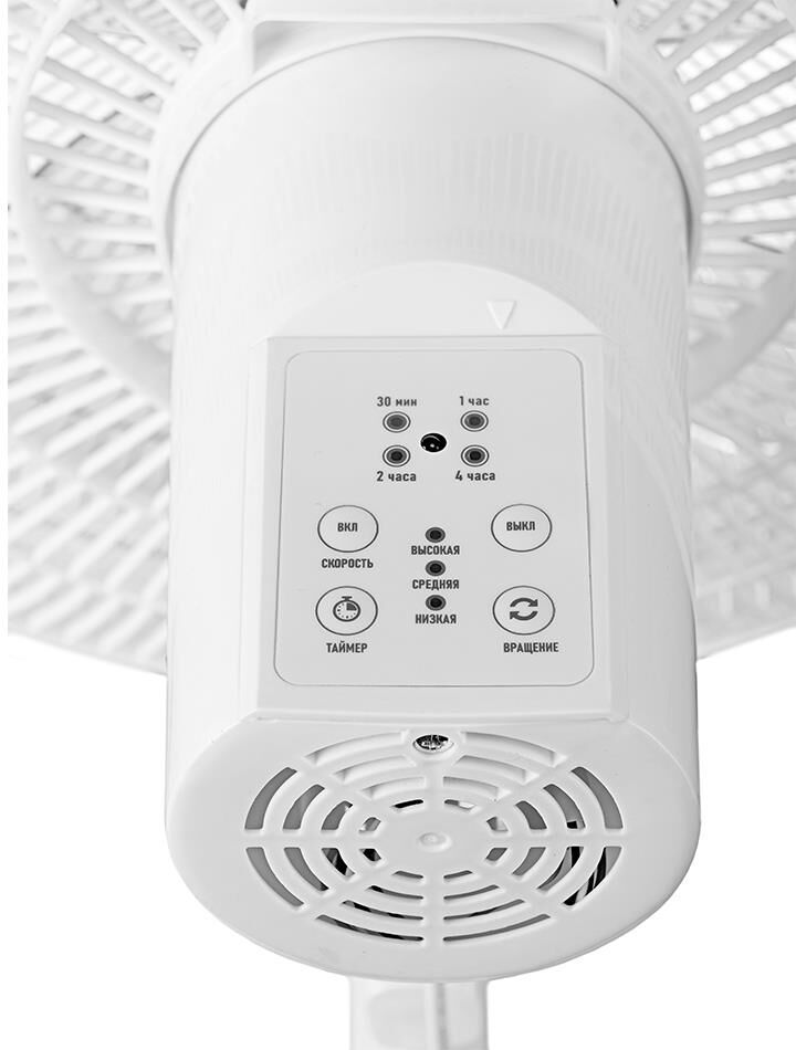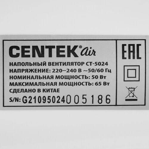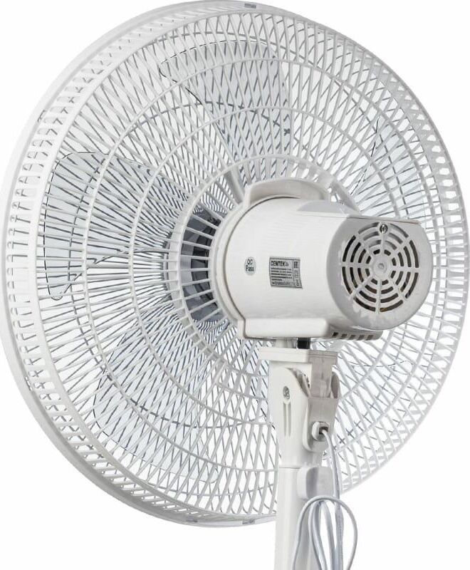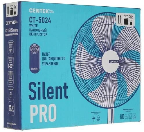 CENTEK CT-5024 WHITE (белый) 65Вт, SILENT PRO ТЕХНИЧЕСКИЕ ХАРАКТЕРИСТИКИ Напряжение питания 220-240 В~50/60 Гц Мощность 65 Вт Кол-во скоростей 4 Кол-во лопастей 5 Таймер до 7.5 часов Пульт дистанционного управления Ночной режим Низкий уровень шума Диаметр решетки 44,5 см ОПИСАНИЕ ПРИБОРА Регулировка высоты прибора Регулировка наклона моторного блока в вертикальной плоскости Автоматический поворот в горизонтальной плоскости 90°