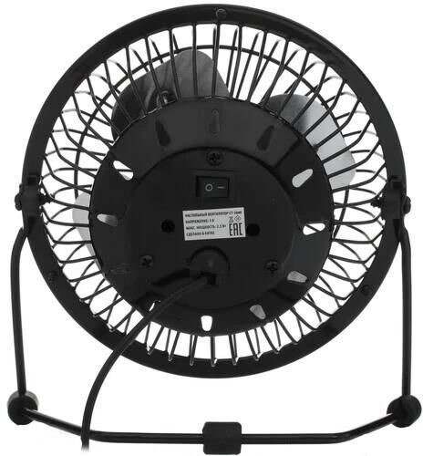 Мощность 2.5 Вт USB Подключение Диаметр решетки 14 см КОМПЛЕКТНОСТЬ 1. Передняя решетка вентилятора 2. Лопасти вентилятора 3. Электромотор 4. Переключатель ВКЛ/ВЫКЛ 5. Подставка 6. USB-кабель