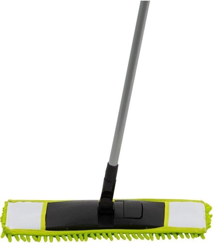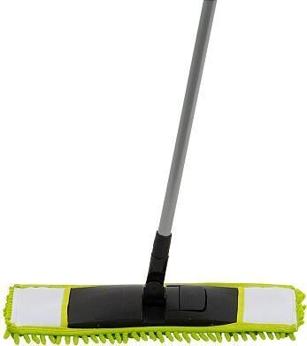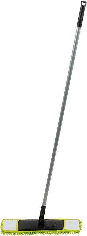Материал: полипропилен, сталь, микрофибра 900 гр/м2 (полиэстер 100%). Размер платформы: 39*9 см Размер насадки: 41*12 см Длина рукоятки (черенка): 110 см. Диаметр рукоятки 19мм Рукоятка без телескопа. Цвет платформы: черный. Цвет насадки: зелёный Инд.упаковка: пакет + бумажная этикетка Микрофибра притягивает и удерживает частицы пыли за счет безупречных электростатических свойств материала. Может быть использована для сухой и влажной уборки для различных материалов поверхности. Сменная насадка: артикул 310311 Насадка для швабры из микрофибры MopM4-H «Лапша»