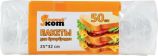 В рулоне: 50 штук, плотность 5,7мкм, прозрачные 25х32см. Материал: полиэтилен низкого давления.