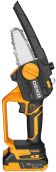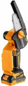 Напряжение АКБ: 20 В Емкость АКБ: 2000 мАч Длина шины: 4"(100 мм) Скорость вращения цепи: 6 м/с Количество звеньев: 28 шт Шаг цепи: 1/4 дюйма Ширина паза: 1.4 мм Комплектация: Пила - 1 шт Защитный кожух - 1 шт АКБ - 1 шт Шина - 1 шт Цепь - 1 шт Зарядное устройство - 1 шт Шестигранный ключ - 1 шт Крепежный комплект (винт - 1 шт, шайба - 1 шт, пружина - 1 шт) - 1 шт Руководство по эксплуатации - 1 шт