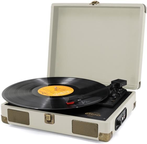 Виниловый проигрыватель. 3 скорости; 33 1/3,45, 78 об в мин c фунцией Автостопа; два встроенных динамика, Jack 3.5 мм для наушников, RCA выход, тонарм: ручной, переключатели: громкости, Питание: Type-C, DC 5В В комплекте дополнительно: USB зарядный кабель, мануал, гар. талон