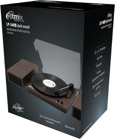 Комплектация: гарантийный талон, адаптер для пластинок на 45 оборотов в минуту, инструкция пользователя, стационарная колонка для LP340B - 2 шт., виниловый проигрыватель LP-340B