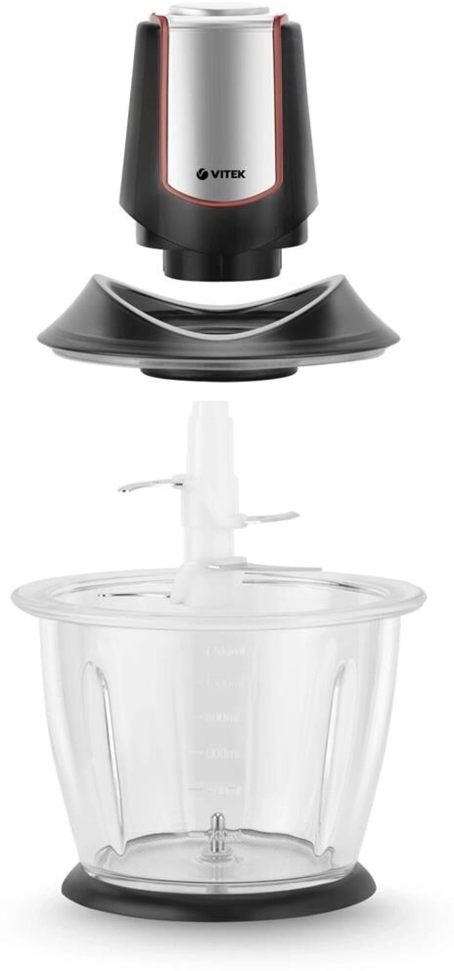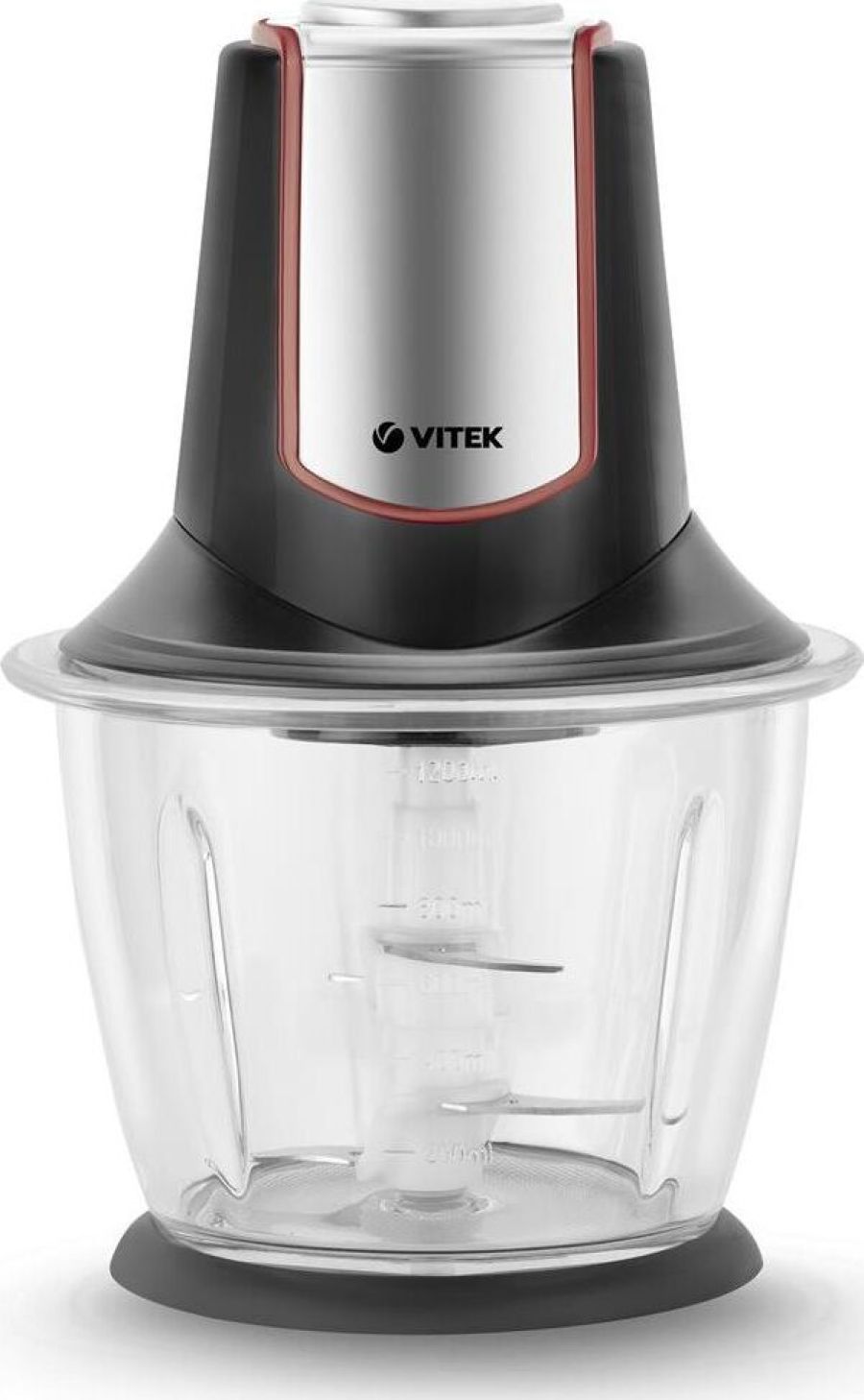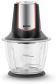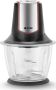 Чоппер. Мощность: 500 вт, Емкость чаши: 1200 мл, Количество скоростей: 1, Универсальный нож с 4-мя лезвиями, Материал корпуса: пластик, Материал чаши: стекло, Прорезиненные ножки: прорезиненная подставка, Цвет: Черный/серебро