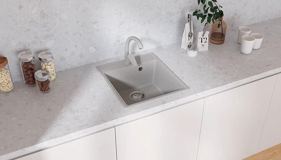 Компактная квадратная мойка Practik PR-M 425 с отверстием под смеситель отлично подходит для небольшой кухни. Материал мойки представляет из себя искусственный камень, который является композитом на основе натурального мрамора и связующих смол. Искусственный камень существенно снижает уровень шума при падении струи воды. Специальное покрытие гелькоут защищает поверхность мойки от загрязнений и бытовых царапин, делая уход за мойкой легким и простым. Данная мойка имеет современный минималистичный дизайн, а установка в шкаф шириной от 45 см дает возможность осуществить монтаж мойки практически в любую мебельную базу и открывает широкий спектр возможностей при проектировании кухни. Заводская гарантия составляет 1 год, а срок службы данной мойки, при соблюдении основных правил ухода за ней, составляет более 10 лет.