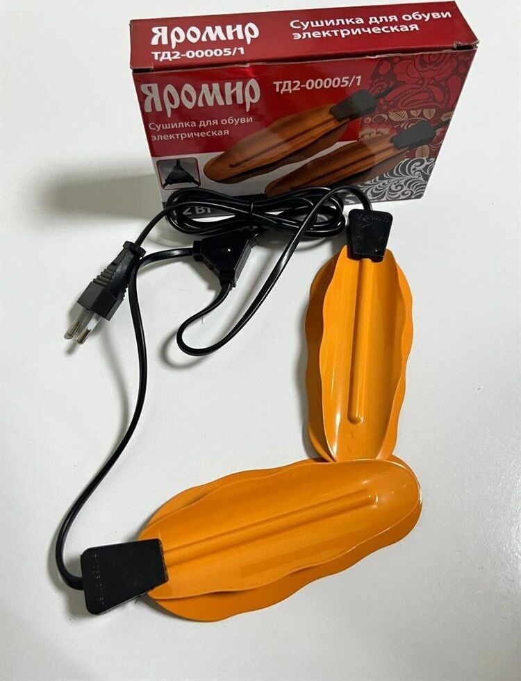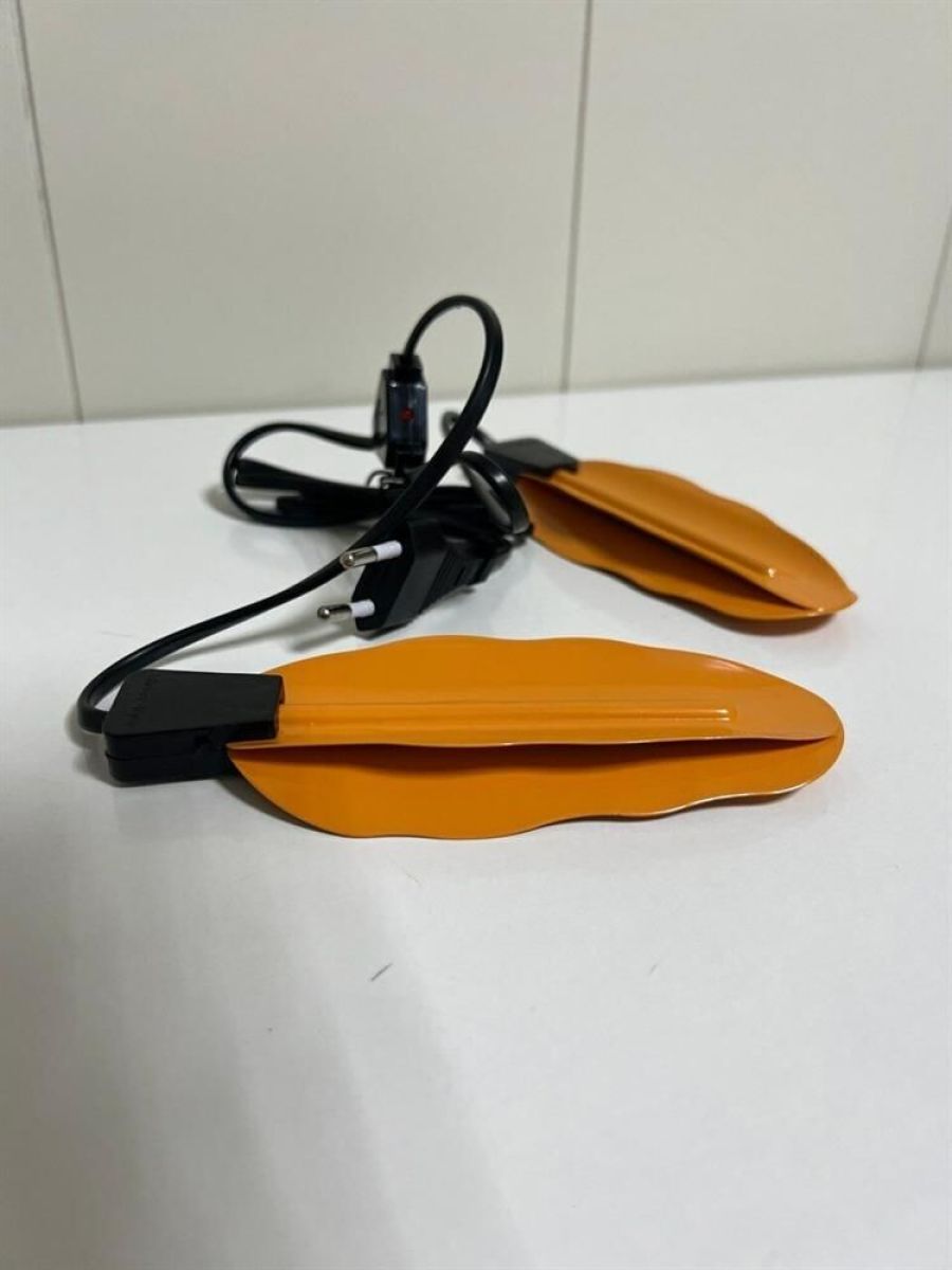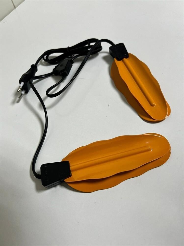 Номинальная потребляемая мощность 12 Вт Рабочая температура 75°С Время нагрева до рабочей температуры 3-5 минут Время непрерывной работы 24 часа Материал: металл, пластик Цвет: оранжевый Световой индикатор работы Сушилка работает от обычной электрической сети Благодаря оптимальному нагреву обувь не пересыхает и не деформируется