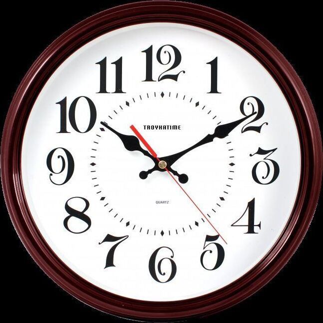 Часы настенные пластиковые, модель 88883882, диаметр 310 мм, стекло минеральное, пластиковый обод, цвет-бордовый.