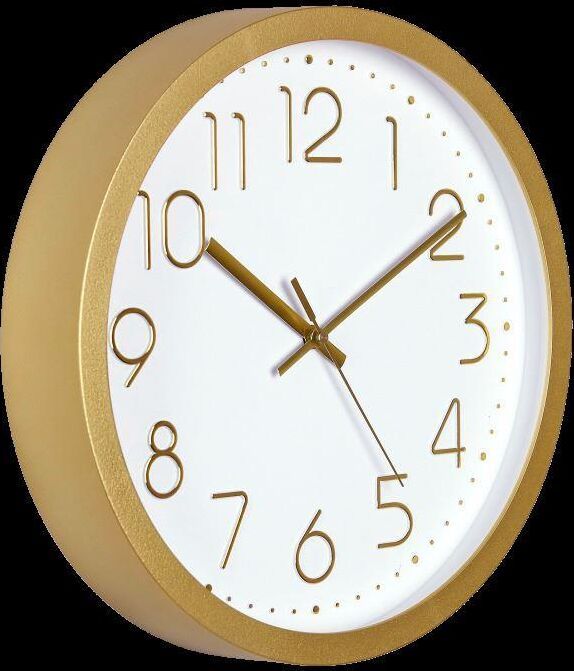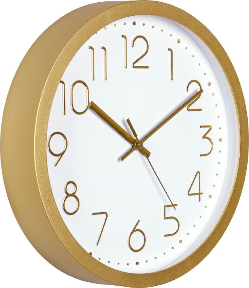 Часы настенные, модель 76768781, размер 305 Х 50 мм, материал пластик,стекло минеральное,обод широкий золотой матовый, рельефные цифры золото