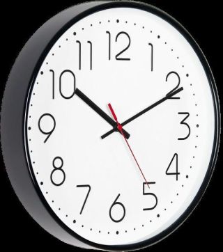 Часы настенные, модель 76760782, размер 305 Х 50 мм, материал пластик,стекло минеральное,обод широкий чёрный матовый, рельефные цифры серебро
