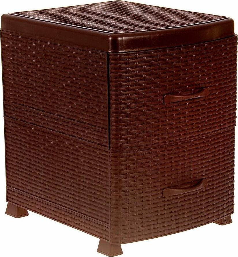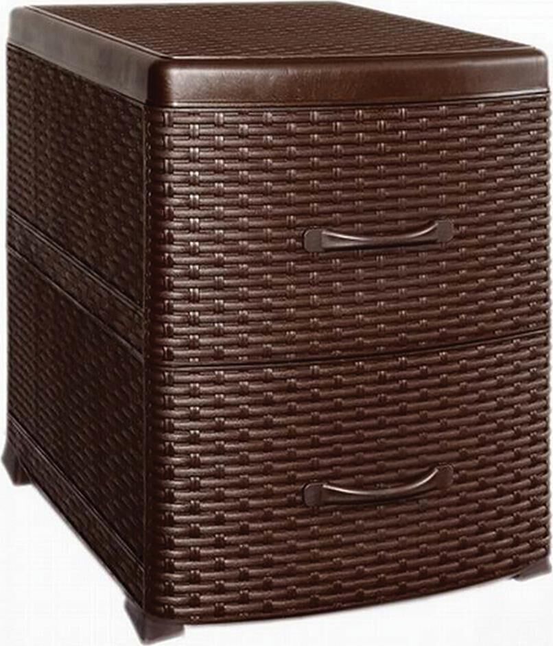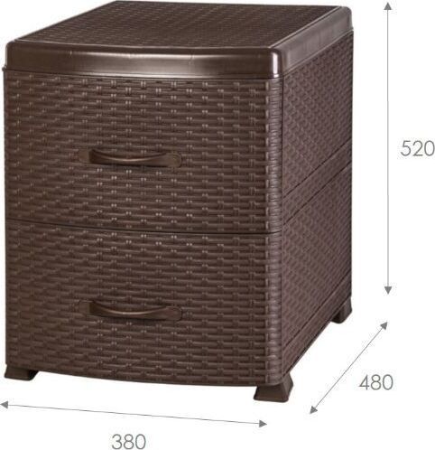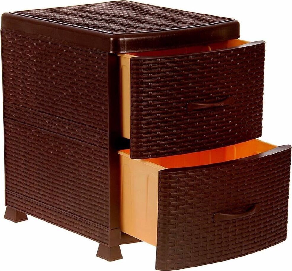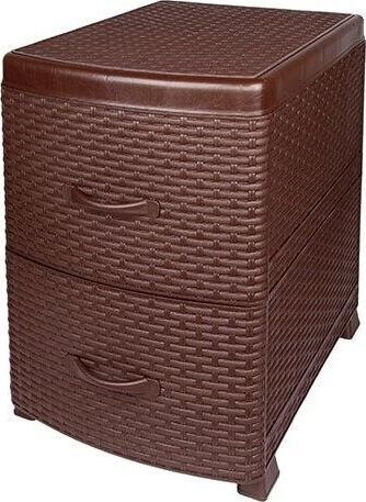 ЦВЕТ: коричневый. РАЗМЕР ИЗДЕЛИЯ: 480 x 380 x 520 мм. МАТЕРИАЛ: Полипропилен. Комод-тумба из пищевого пластика с двумя выдвижными ящиками предназначен для хранения вещей и продуктов питания и гармонично впишется в интерьер любой комнаты. Особенно гармонично будет смотреться в спальне, выполняя функцию прикроватной тумбочки.