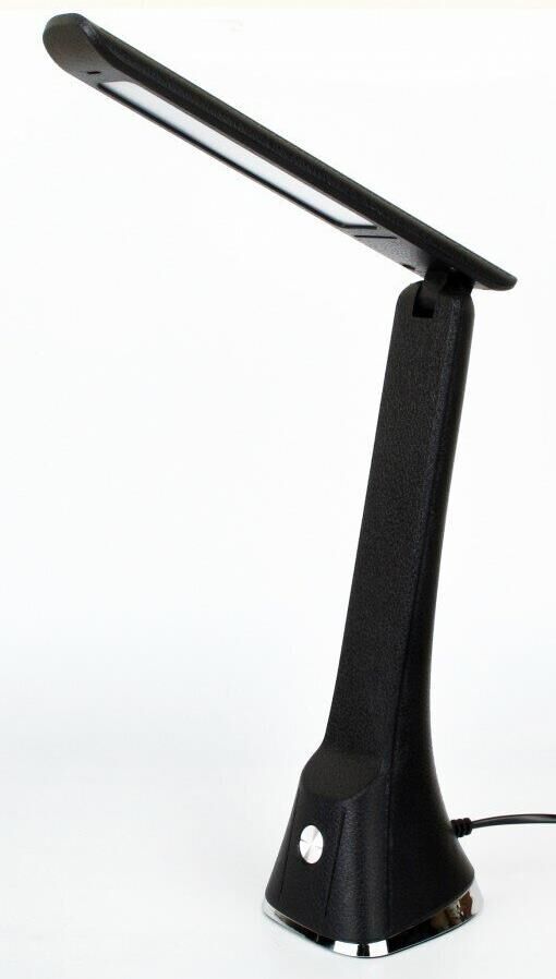 Настольный светильник Ultraflash UF-733 C02 черный, источник света - встроенные светодиоды, питание ~230В, 50Гц, мощность 8 Вт, три уровня яркости. Световой поток - 380лм, материал - пластик. Гарантия 12 месяцев