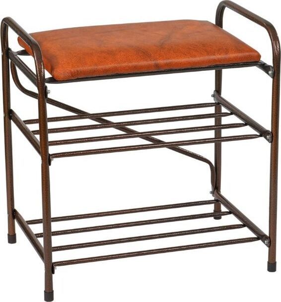 Банкетка-этажерка для обуви 2-х ярусная с мягким сиденьем. ЦВЕТ: коричневый. РАЗМЕР ИЗДЕЛИЯ: 340 x 480 x 520 мм. МАТЕРИАЛ: металл + полипропилен + тканый материал.