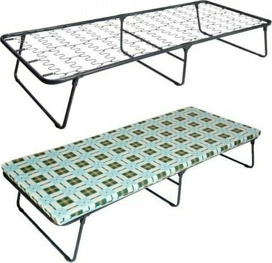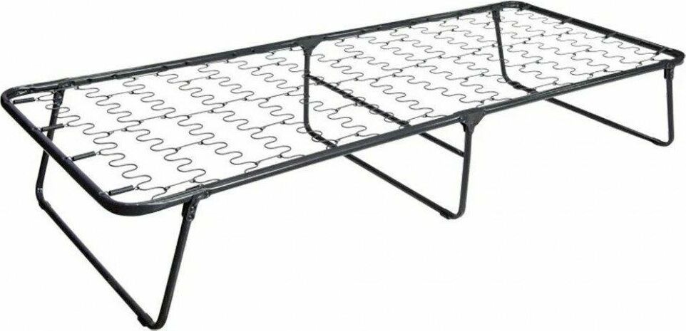 Габаритные размеры в разложенном положении (длина х ширина х высота), мм: 1940х793х385. Габаритные размеры в сложенном положении (длина х ширина х высота), мм: 793x110х970 Максимальная нагрузка, кг : 100 Каркас: основание - труба стальная ф25*1,0 опоры - труба стальная ф19х1,0; полимерное покрытие пружина-змейка – 16шт. пружина – 8шт. Матрас: ткань 45% п/э – 55% хлопок, плотность 108 – 111 г/м2, наполнитель матраса поролон листовой (толщиной – 50мм) Размер упаковки (длина х ширина х высота), мм: 800х115х975. Вид упаковки: термоусадочная пленка, картон гофрированный. Вес изделия: нетто, кг - 10,9.