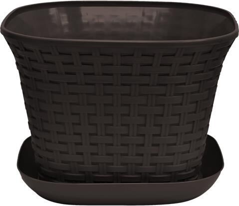 Кашпо квадратное "Ротанг" 9,1 л с поддоном (венге). Размер (ДхШхВ) мм 275х275х205.