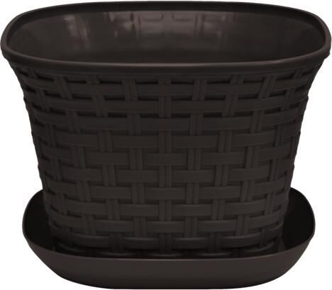 Кашпо квадратное "Ротанг" 4,6 л с поддоном (венге). Размер (ДхШхВ) мм 224х224х165