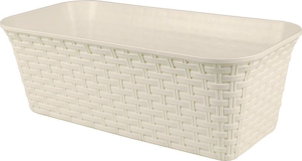 ЦВЕТ: слоновая кость. РАЗМЕР ИЗДЕЛИЯ: 430 х 202 х 147 мм. МАТЕРИАЛ: Полипропилен. Емкость из пластика для оформления жилых и рабочих помещений, а также садовых и уличных пространств цветочными композициями. Имеет два сценария использования: в качестве кашпо для размещения в нем горшка с растением и в качестве непосредственно цветочного горшка с дренажем (на дне корпуса имеется вкладка с отверстиями для обеспечения оттока лишней влаги из почвы растения).