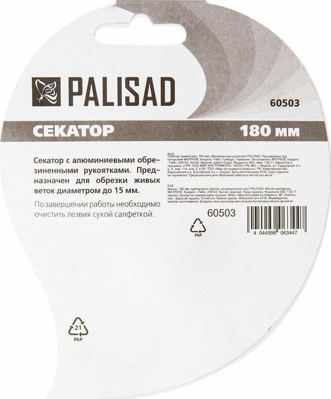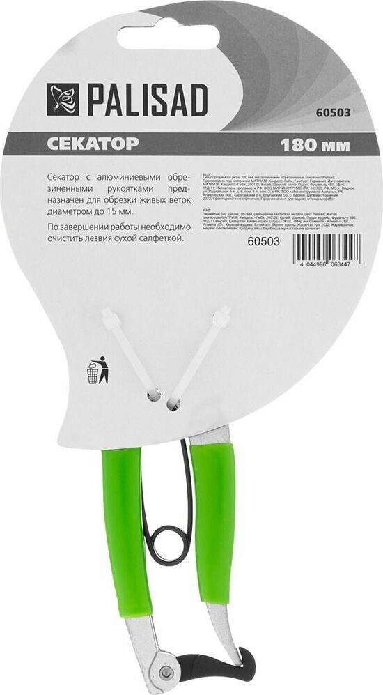 Тип реза прямой рез. Материал лезвий среднеуглеродистая сталь. Длина 180 мм. Покрытие рукоятки ПВХ. Метод изготовления рукояток цельнолитые. Материал рукоятки алюминиевый сплав. Покрытие режущего лезвия оксидировние. Максимальный диаметр реза 15 мм.