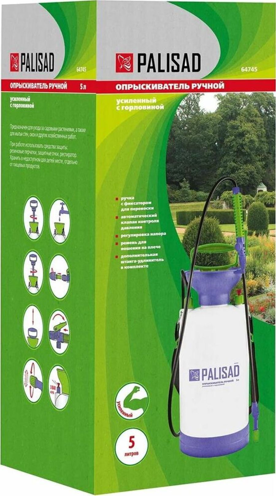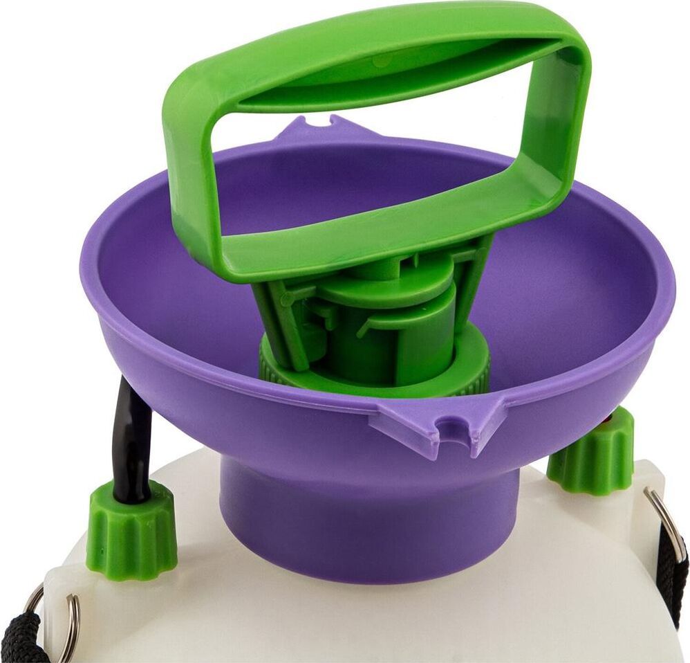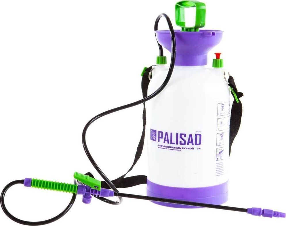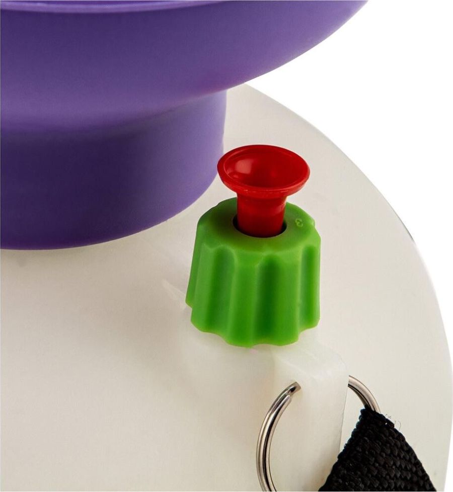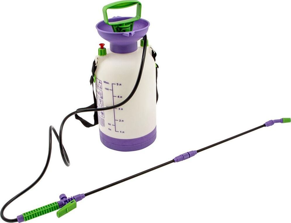 Опрыскиватель предназначен для обработки пестицидами, микрополива растений и внесения жидких удобрений в почву. Конструкция дна придает опрыскивателю устойчивость. Автоматический клапан снижает излишнее давление внутри бачка. Ручка опрыскивателя оснащена фиксатором для непрерывного полива. Широкая горловина обеспечивает быстрое и точное наполнение опрыскивателя. Преимущества: Горловина. Помповый насос. Шланг. Разбрызгиватель. Ремень для ношения на плече. Регулировка распыления. Мерная шкала.