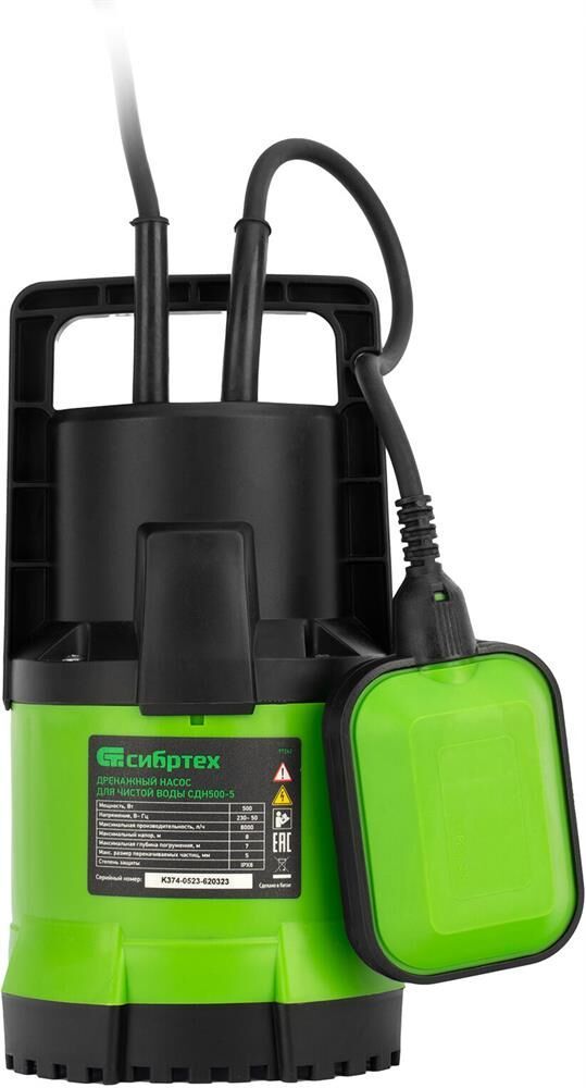 Максимальная глубина погружения, м 7 . Максимальный диаметр прокачиваемых частиц, мм 5 . Максимальный напор насоса, м 8 . Материал корпуса насосной части пластик. Мощность, Вт 500. Напряжение, В 230 . Производительность, л/ч 8000 . Режим работы автоматический .