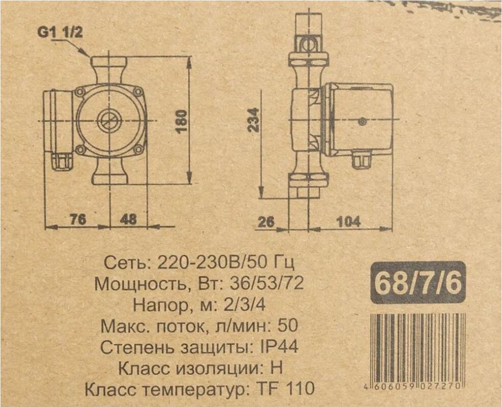 Напряжение питающей сети, В 220-230. Частота питающей сети, ГЦ 50. Габариты упаковки 0.205 × 0.15 × 0.14 м. Мощность, Вт 36/53/72. Напор, м 2/3/4. Максимальный поток, л/мин 50. Максимальное давление в системе, бар 10. Степень защиты IP 44. Класс изоляции Н. Класс температур TF 110. Материал крышки насоса Чугун. Материал корпуса двигателя Алюминий. Размер резьбы на насосе, дюйм 1 1/2. Монтажная длина, мм 180.