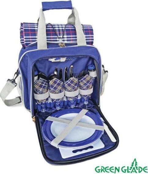 Набор для пикника GREEN GLADE T3063 является незаменимой вещью для отдыха на природе и в дальних поездках. • Изотермическая сумка-холодильник • Размер (ДхШхВ): 37х24х28,5 см •Вес нетто: 2,6 кг •Объем: 20 л •Материал: 600х300D полиэстер •Количество предметов в сумке на 4 человека: 30 штук (ножи, вилки, ложки, бокалы, тарелки, салфетки, солонка, перечница, штопор, нож, разделочная доска, плед) • Количество в коробке: 6 штук •Размер индивидуальной коробки: 29х19х39 см •Размер транспортной коробки: 79х31х59 см •Вес брутто: 18 кг
