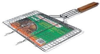 Двойная решетка для гриля L=59 см с деревянной ручкой- для мяса, упоры для мангала Коробка: 66*35,5*35 см, вес 19 кг, 12 кор/пал