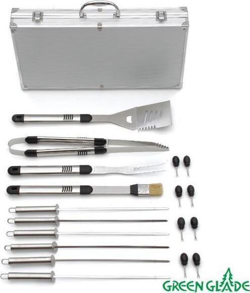 Набор для гриля в металлическом чемодане 18-ти предметов с деревянными ручками 50х25х8см