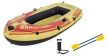 Размер: 218*110*36см Материал: ПВХ, пластмасса Макс. кол-во пассажиров: на одного взрослого и одного ребенка Две основные камеры на корпусе для дополнительной безопасности. Винтовой клапан быстрого надувания и спуска воздуха. Веревка для захвата по всему периметру. Надувной пол для комфорта и твердости. Прочные замки для весла и держатели для весел. В комплект входят: 1 лодка, 1 пара весел, 1 ножной насос, ремонтная заплата