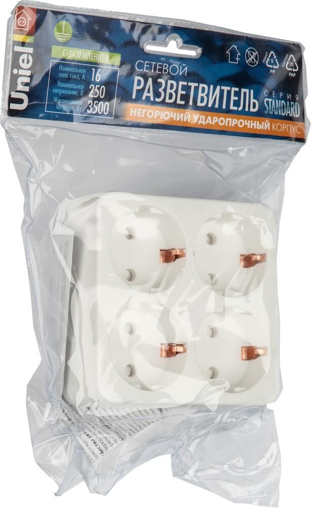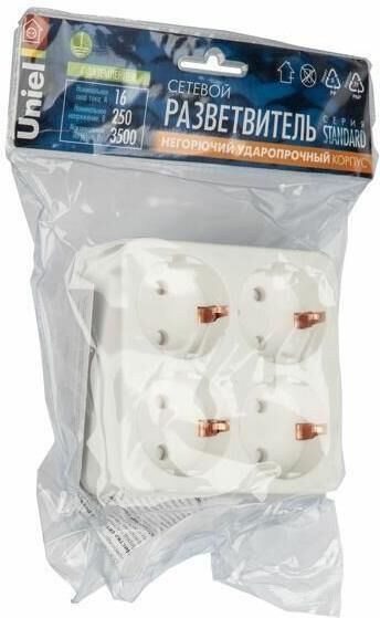 Артикул; UL-00011241; Максимальная нагрузка, Вт; 3 500; Номинальная сила тока, А; 16; Входное напряжение, В; 220; Высота изделия, мм; 80; Длина изделия, мм; 95; Ширина изделия, мм; 95; Вес изделия, гр.; 128; Вес брутто, кг; 0,142; Количество гнезд, шт.; 4; Материал корпуса (изделия); пластик негорючий; Цвет корпуса (изделия); белый; Заземление; Да; Степень защиты, IP; 20; Срок гарантии, мес.; 12 месяцев; Срок годности; не ограничен; Срок службы, лет; 5; Страна производства; Китай
