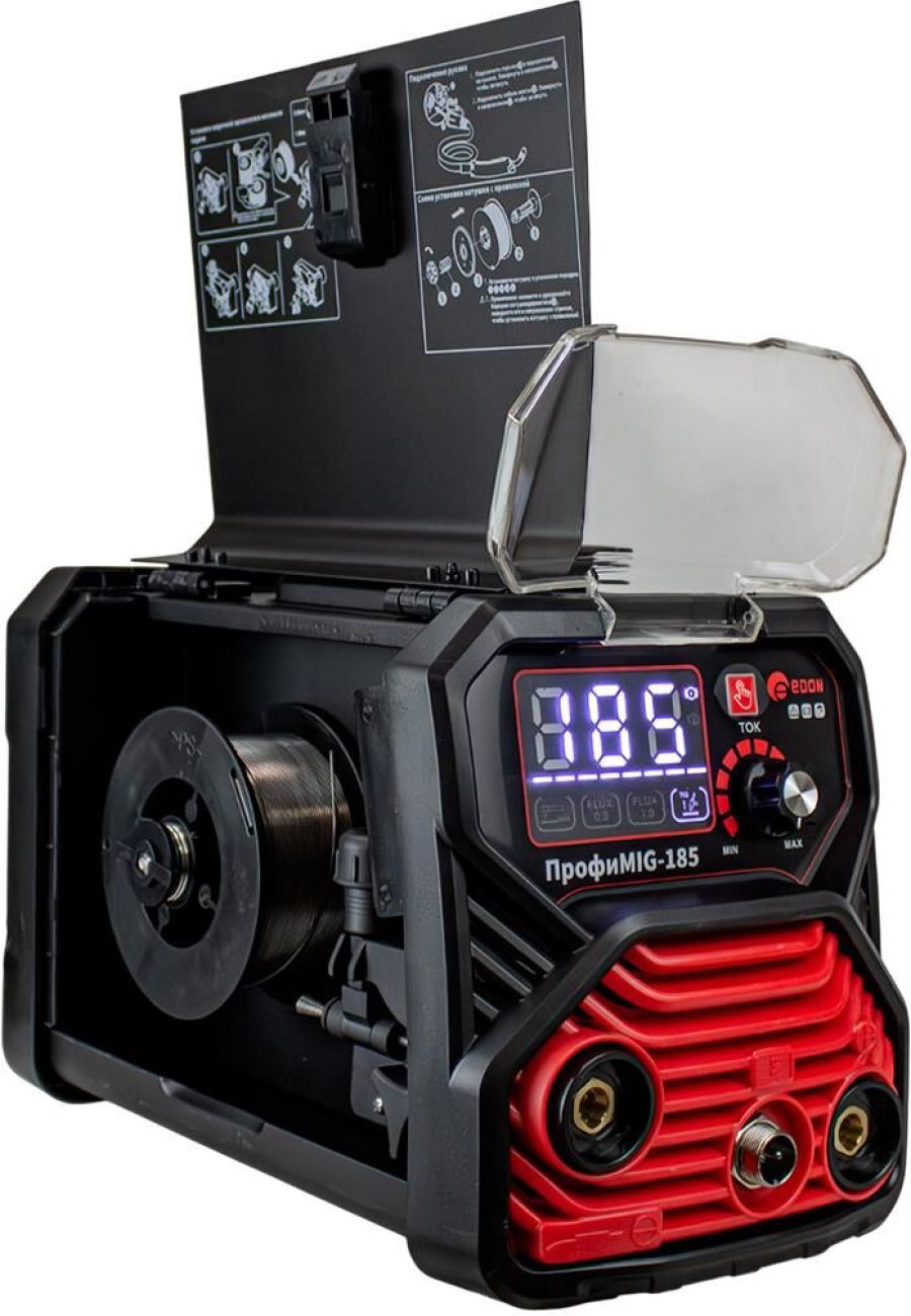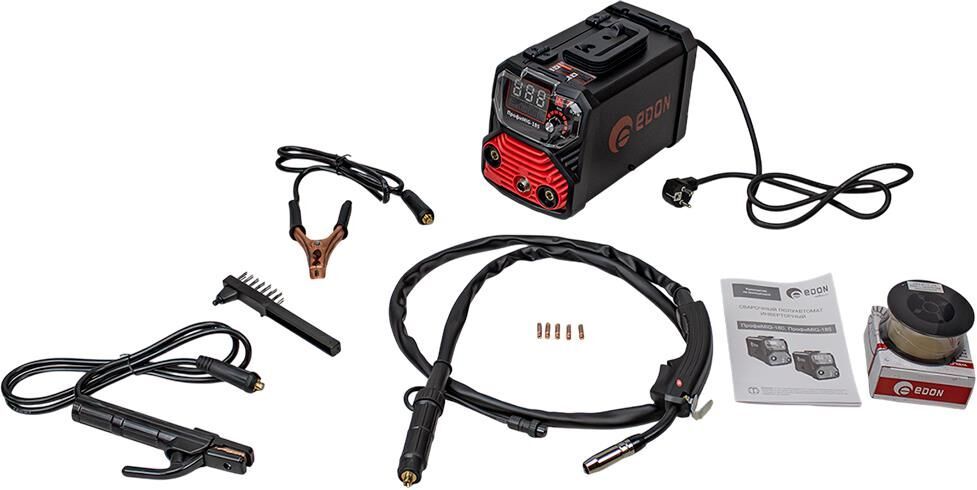 Сварочный инверторный полуавтомат EDON Профи MIG-185 предназначен для ручной дуговой сварки ММА стальных металлоконструкций из низкоуглеродистых и низколегированных сталей штучными электродами с покрытием всех видов, а также для сварки FCAW без газа порошковой (самозащитной) проволокой (с флюсом). Диапазон сварочного тока: MIG: 50-185А и MMA: 20-185А. Сварка отличается высокой стабильностью горения дуги, низким уровнем разбрызгивания металла и качественным формированием сварного шва. Кроме того, сварочный аппарат инвенторный имеет встроенные функции: горячий старт («HOT START») позволяет быстро зажечь дугу и начать сварку; анти-залипание («ANTI STICK») автоматически снижает сварочный ток при «залипании» электрода; форсаж дуги («ARC FORCE») помогает капле оторваться от стержня электрода, делая тем самым процесс переноса капель, через дуговой промежуток, четким и равномерным, что делает процесс эксплуатации