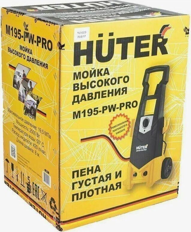 Тип двигателя - Электрический. Рабочий расход жидкости - 420л/ч. Максимальное давление поступающей воды - 0,4 MПа(4бар). Мощность мотора - 2500Вт. Максимальная температура воды - 50°С. Давление - 130-195бар. Материал - Металл.