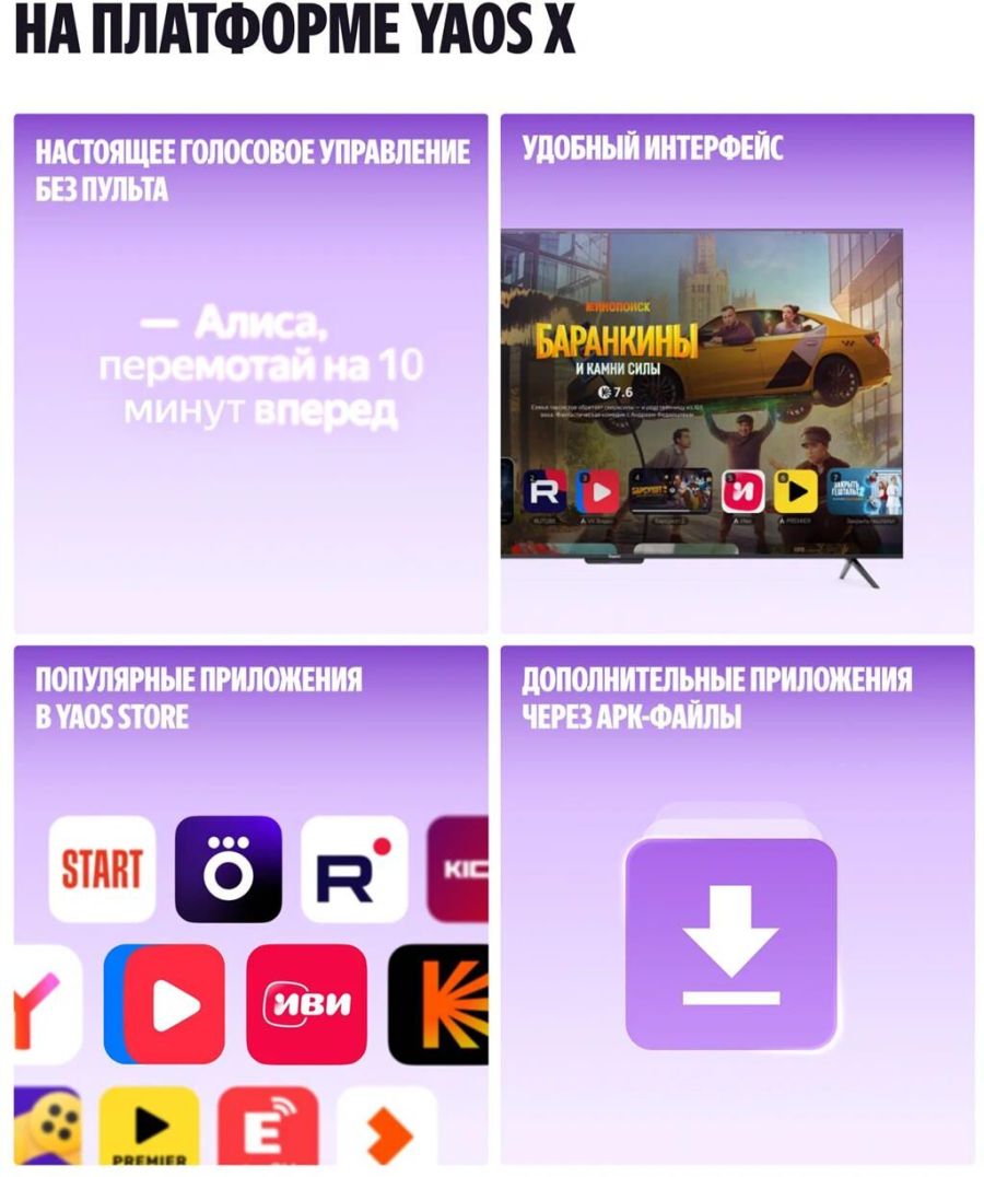 Цвет: черный | Потребляемая мощность, Вт: 100.00 | Класс энергопотребления: B | Тип матрицы: VA | Формат экрана: 16:9 | Область обзора по горизонтали: 178.00 | Размер экрана: 43" | Частота обновления: 60 Гц | Подсветка экрана: да | Яркость, кд/м2: 320 | Контрастность: 5000:1 | Колонки: да | Ширина, мм: 958.00 | Wi-Fi: 802.11a/b/g/n/ac | Bluetooth: да | Операционная система: YaOS X | Оперативная память: 2Гб | Наличие USB 2.0: 2.00 | Размер экрана телевизора в сантиметрах: 108см | Максимальное разрешение: 3840x2160 | Встроенная память: 32 | Объем упаковки, м3: 0.09114 | Вес упаковки, кг: 15 |