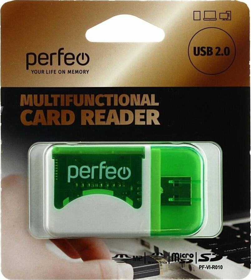 Кардридер Perfeo PF-VI-R010 предназначен для чтения/записи современных карт памяти (SD, SDHC, MMC, Micro SD, M2, XD, MS, и др.) Кардридер не снижает скорости трансферов, что необходимо для быстрой передачи данных и полного использования карт памяти. Небольшие размеры и легкий вес кардридеров позволяют использовать их в любое время, так как они всегда могут быть под рукой.
