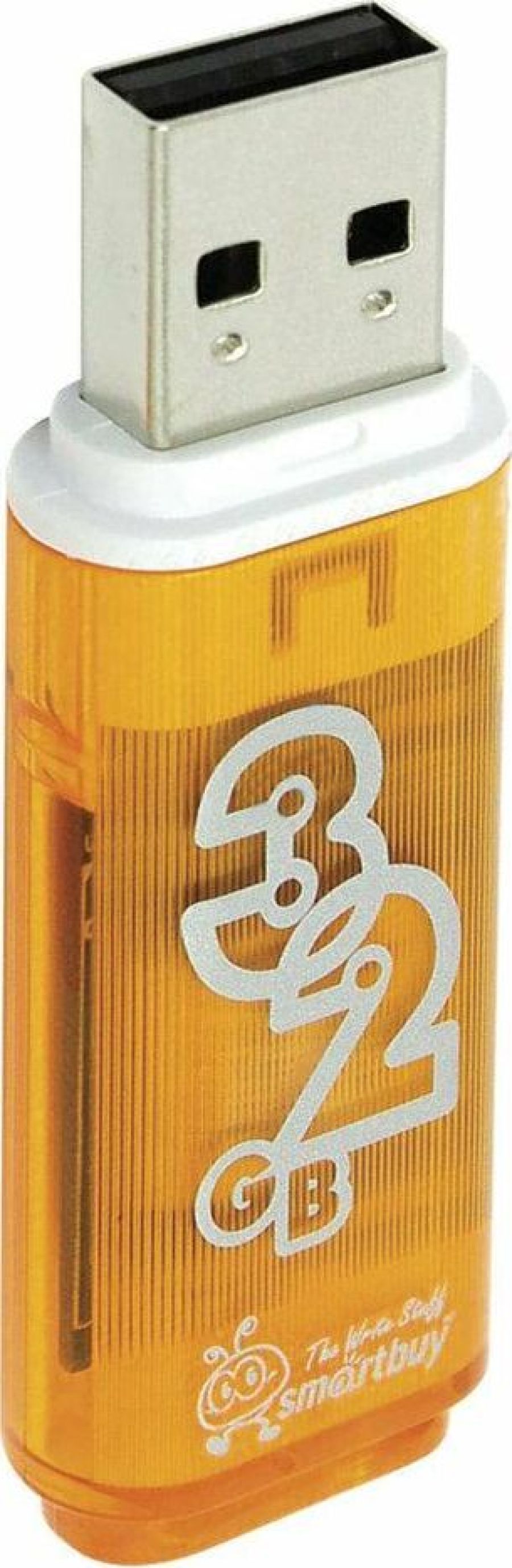 USB-накопитель Glossy, емкость - 32GB, интерфейс - USB 2.0 , оборудован специальной системой для крепления колпачка — с помощью скобки он фиксируется между двумя выступающими пластинками на устройстве, это очень удобно и минимизирует вероятность потери защитного колпачка, за эту же скобку устройство можно прикрепить к шнурку, чтобы накопитель всегда был под рукой.