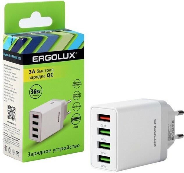 • Мощность 36Вт • Вход: 100-270В/ 50-60 Гц • Выход: USB*4; 5V-9V/3А макс (быстрая зарядка) • Диапазон рабочей температуры: +30 - -30 • Количество USB портов: 4 • Срок службы: 1 год • Размер: 80*50*100 мм • Вес: 60г