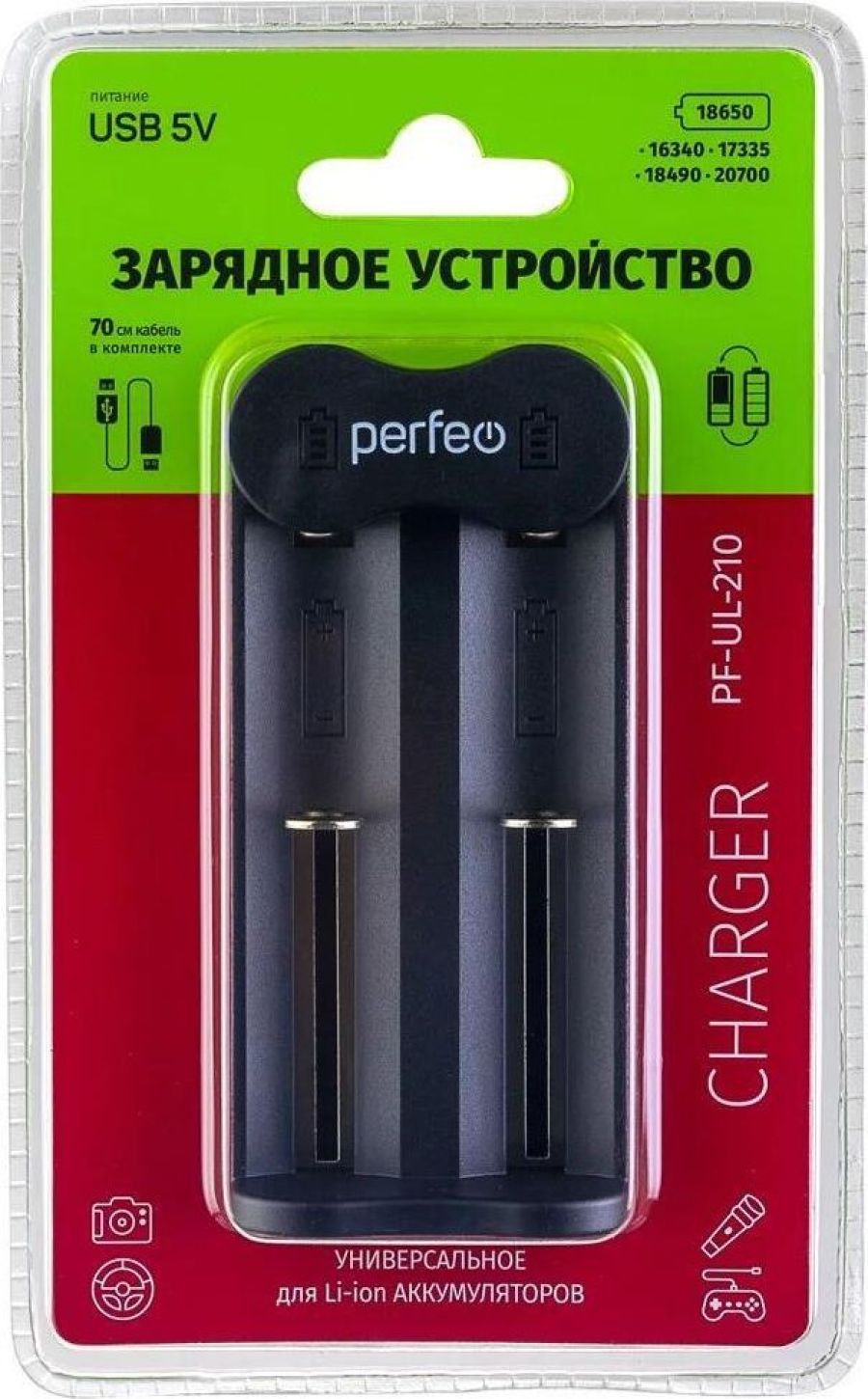 Компактное универсальноезарядное устройство. Предназначено для быстрого, безопасного многократного заряда Li-ion аккумуляторов. Зарядное устройство работает от любого USB-порта 5В через шнур USB – microUSB (в комплекте). Оснащено светодиодным индикатором, показывающим процесс заряда аккумулятора