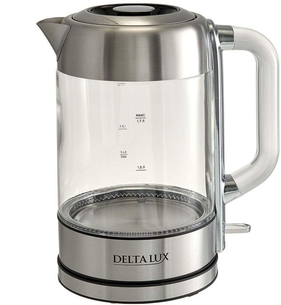 Корпус из термостойкого стекла • Закрытый нагревательный элемент из нержавеющей стали • Автоматическое отключение при закипании • Блокировка включения без воды • Шкала уровня воды • Внутренняя LED-подсветка • Съемная крышка • Съемный фильтр • Вращение корпуса на 360° • Отсек для хранения шнура питания • Объем 1,7 л • Номинальная потребляемая мощность 2200 Вт • Диапазон номинальных напряжений: 220-240 В ~ 50 Гц