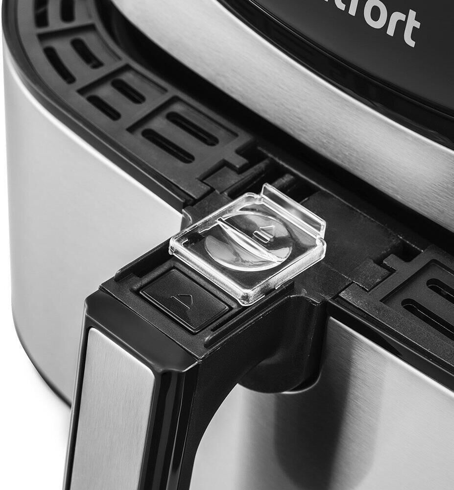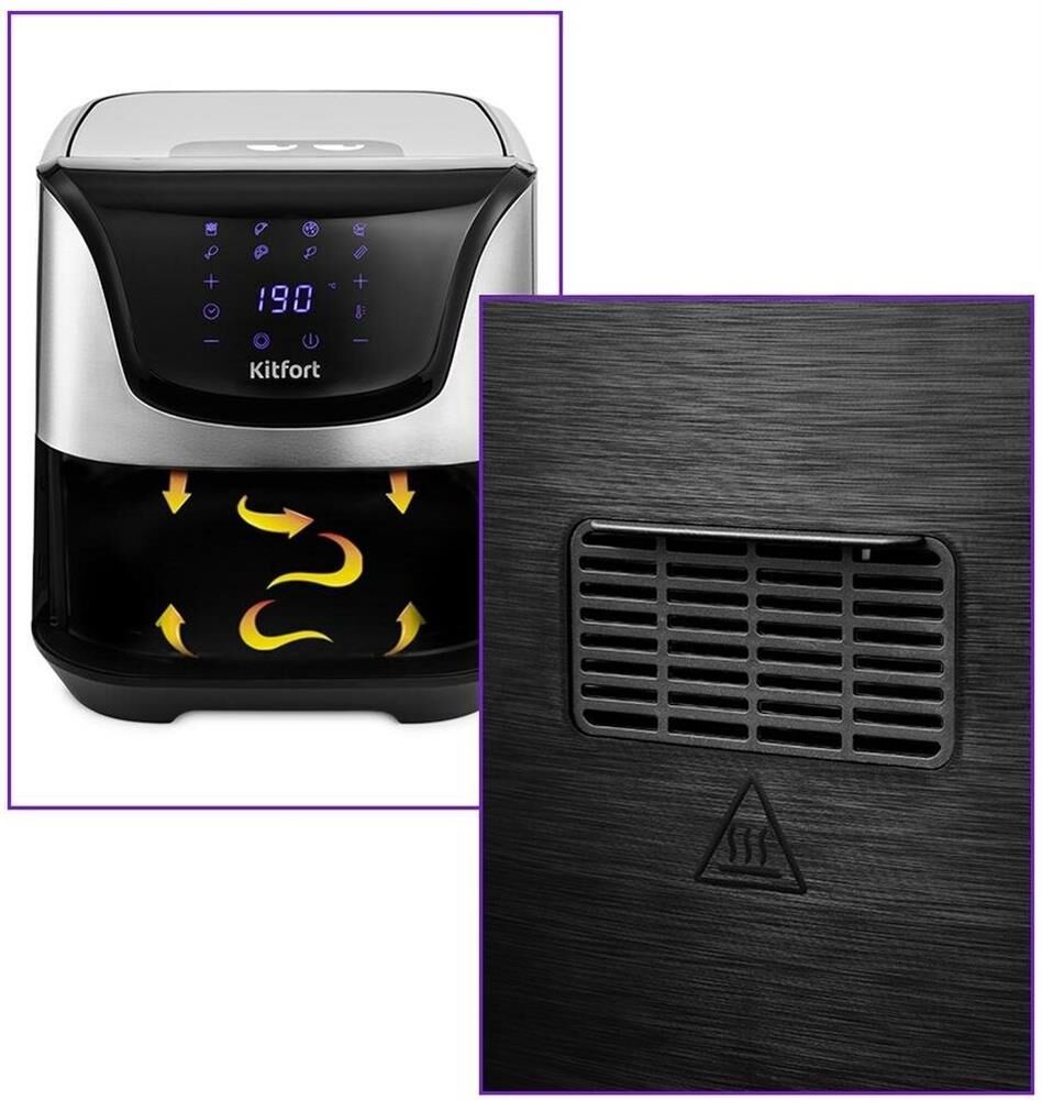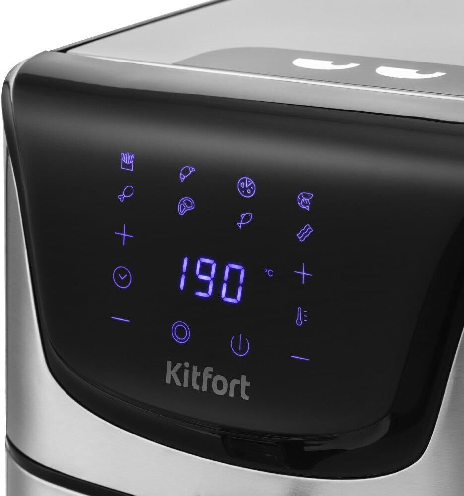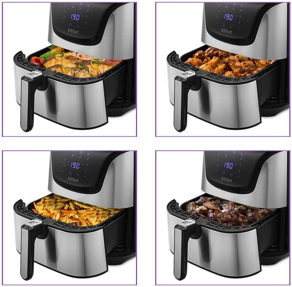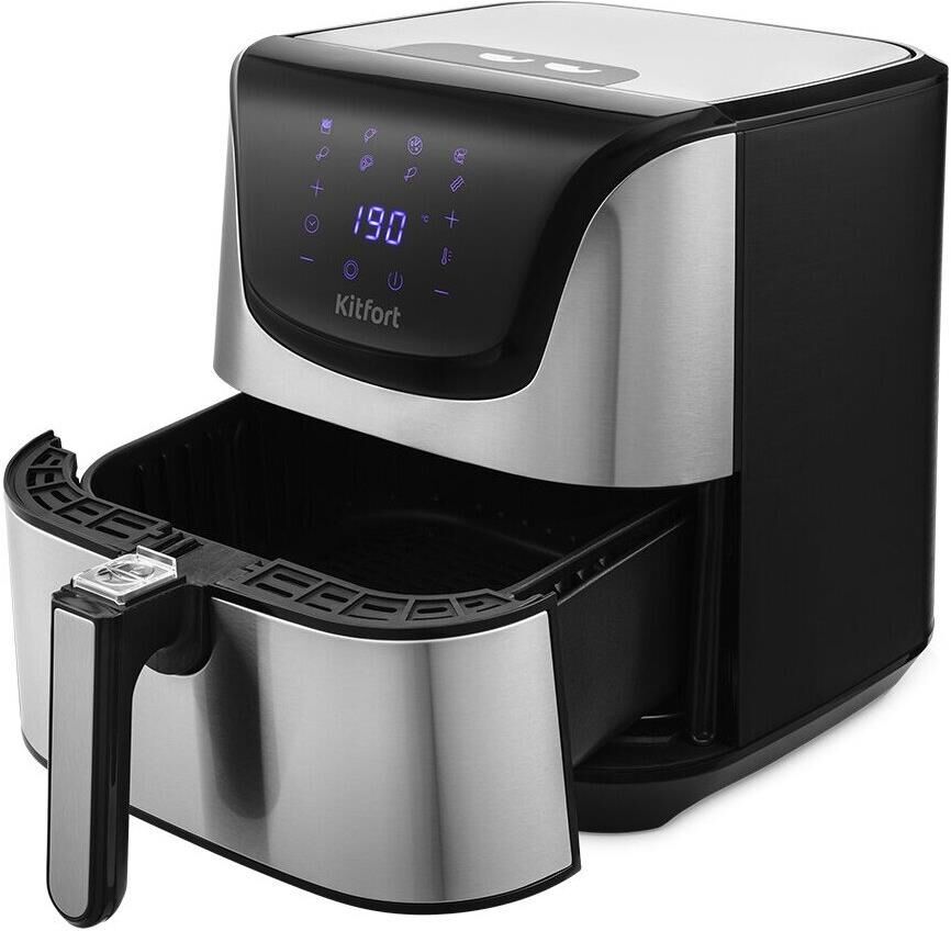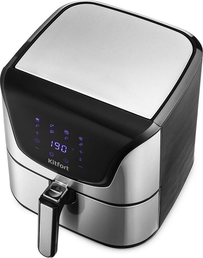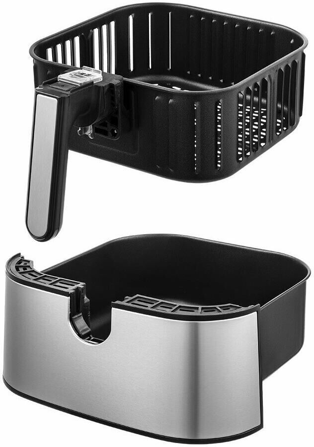 Мощность 1700 Вт. Длина шнура 1 м. Объём 4,9 л. Количество программ приготовления 8 + ручные настройки. Регулировка температуры от 80 °C до 200 °C с шагом 5 °C. Таймер от 1 до 60 мин с шагом 1 минута. Управление сенсорное. Размер устройства 315 х 378 х 323 мм.