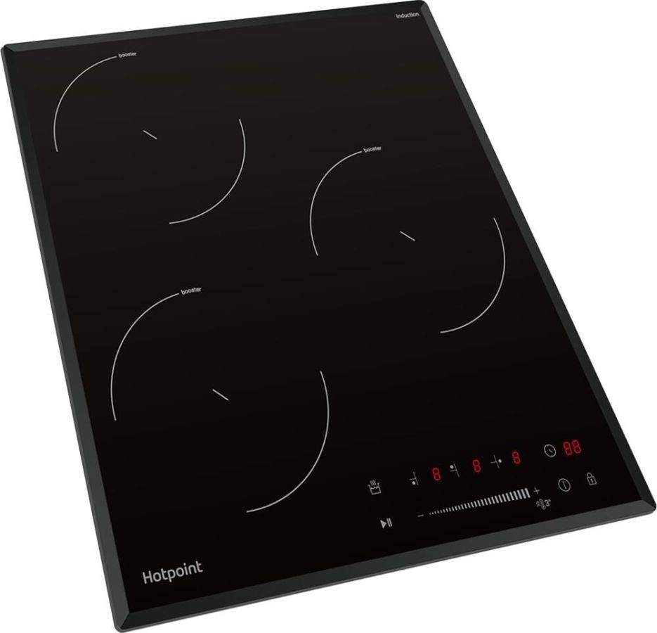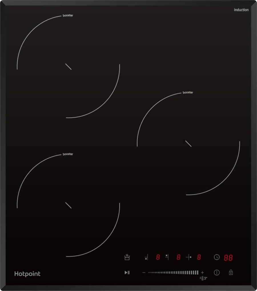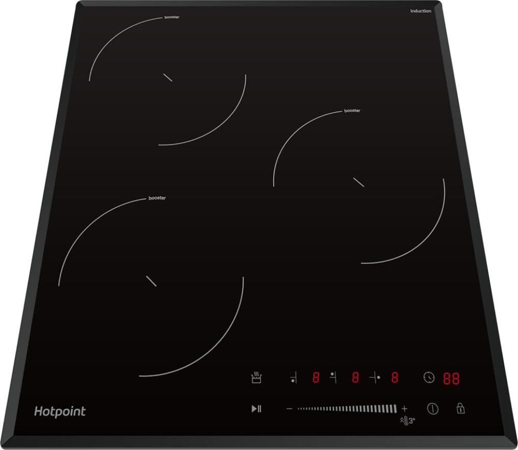 Индукционная варочная поверхность шириной 45см, 3 зоны нагрева, функция быстрого нагрева Booster, 9-ступенчатая регулировка мощности, слайдерное упрвление, таймер на 99 минут, функция блокировки управления, индикация остаточного тепла, скошенные края по п