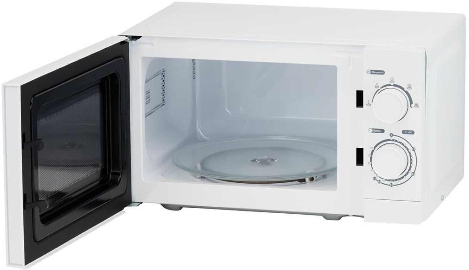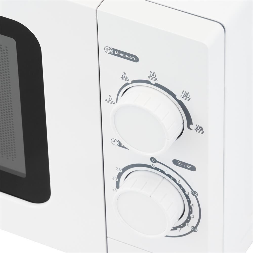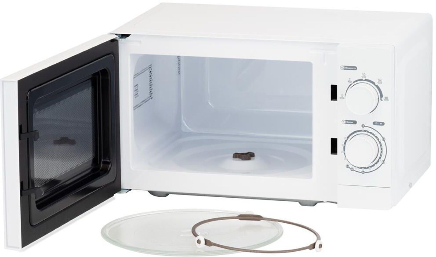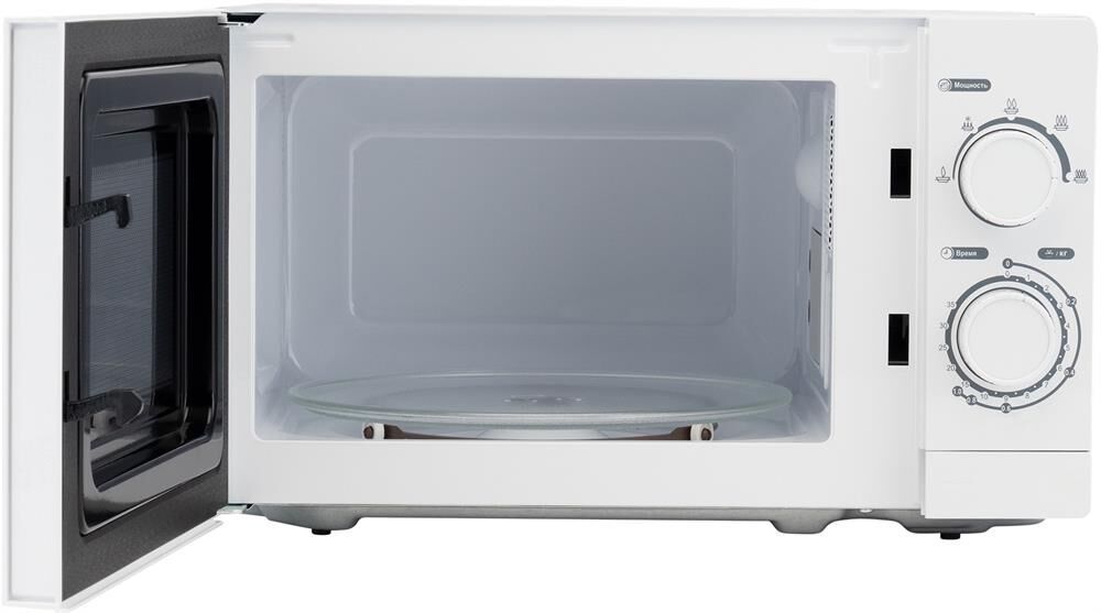 Объем 20 л; Мощность 700 Вт; 5 уровней мощности; Максимальное время приготовления 35 мин; Поворотный стол 25,5 см; Функция разморозки; Сигнал об окончании готовки; Механизм открывания дверцы – кнопка; Тип управления: механический; Цвет: белый