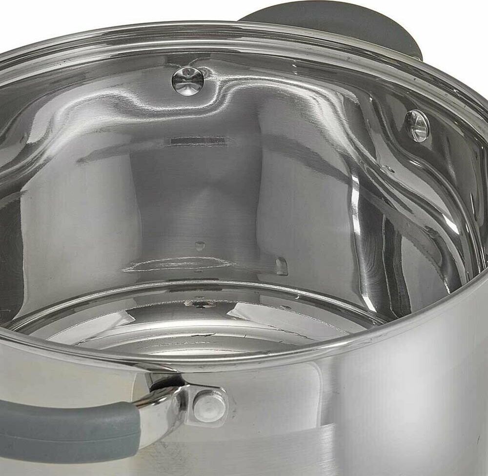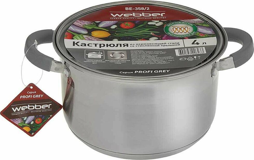 Параметры Объем 4 л Диаметр 20 см Глубина 12,5 см Толщина стенок 0,5 мм Описание Кастрюля из высококачественной нержавеющей стали со стеклянной крышкой Специальная форма, исключающая скопление остатков пищи и жира Термосберегающее дно: пятислойное капсульное индукционное дно с повышенной термоотдачей Быстрый нагрев пищи, длительное удержание тепла Минимальные потери минеральных веществ, витаминов и вкусовых качеств Может быть использована на всех типах кухонных плит, включая индукционные Подходит для мытья в посудомоечной машине