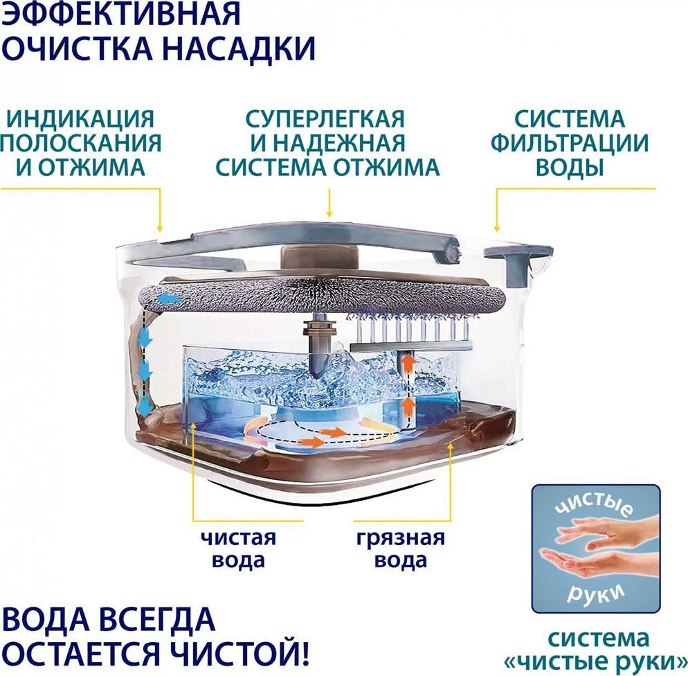 Компактный набор NIAGARA идеально подходит для влажной уборки небольших помещений. Ваши руки всегда остаются сухими и чистыми! Оснащен системой отжима насадки с уникальной функцией фильтрации воды - отделения/сепарации грязной воды, опцией индикации полоскания / отжима. Цвет: мятный Состав: пластик, металл, полиэстер Комплектация: швабра-1шт, насадка-1шт, ведро-1шт, система отжима-1шт Подходит для всех видов напольных покрытий, в том числе и деликатных полов Насадка изготовлена из высококачественной, высокопрочной микрофибры В отличии от натуральных волокон, микрофибра обладает повышенной впитывающей способностью и удерживает на своей поверхности любые загрязнения, в том числе маслянистые вещества Не оставляет разводов и подходит для деликатного пола Легко отжимается, не скатывается, быстро высыхает и не впитывает запахи Можно стирать в стиральной машинке при температуре 60 градусов Выдерживает до 600 циклов уборки