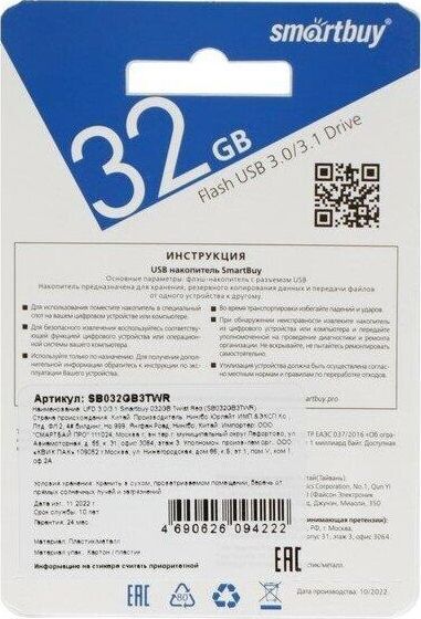 USB-флэш SMARTBUY (SB032GB3TWR) UFD 3.0/3.1 032GB Twist Red красный в интернет магазине КорБТ