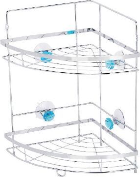 Полка угловая двуъхярусная W2667 "Бриллиант, синий" р-р 24, 5х24, 5х38см (крепление: присоски). Материал: Хромированный металл.Тип крепления: декорированные присоски "Синий бриллиант", так же полку можно вешать на саморезы.