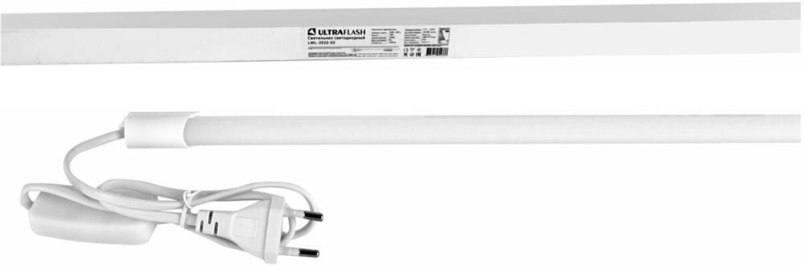 Ultraflash LWL-2022-02 Led линейный, мощность 18 Вт, с проводом и выключателем. 230В, 50Гц, св. поток 1500 лм, цвет темп 4500К, корпус пластик, размер 1200*19*15